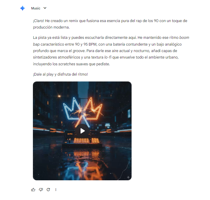 Pulsa el botón Crear música para que Gemini empiece a generar el remix.