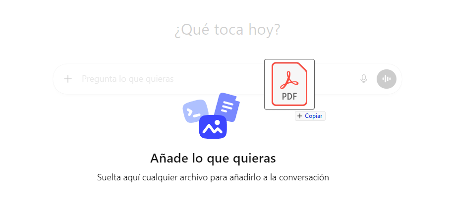 Abre una conversación en ChatGPT y sube el archivo PDF directamente arrastrándolo a la conversación o usando el botón de subir archivos.