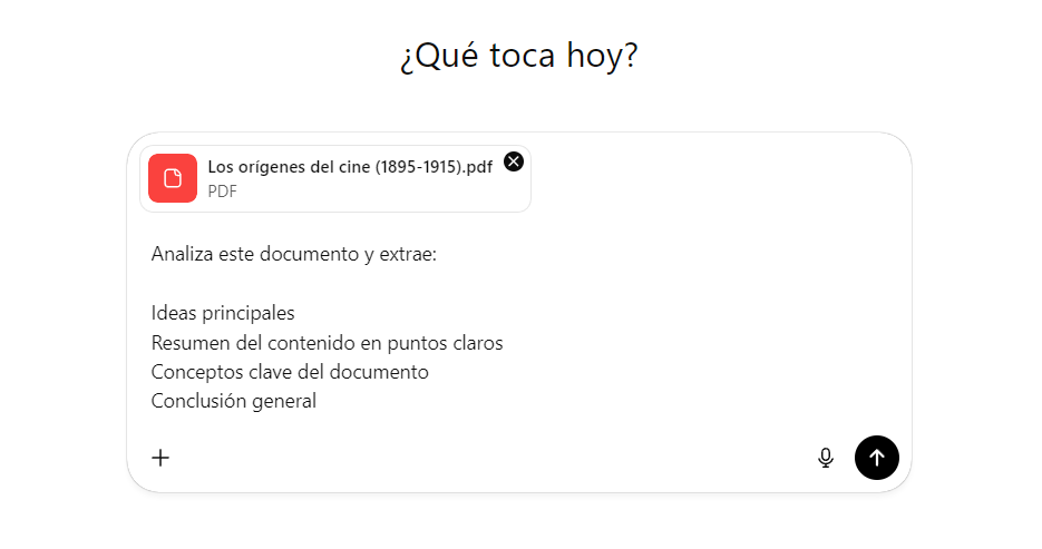 Puedes subir PDFs de apuntes o temarios y pedir a ChatGPT que genere resúmenes o esquemas para estudiar.